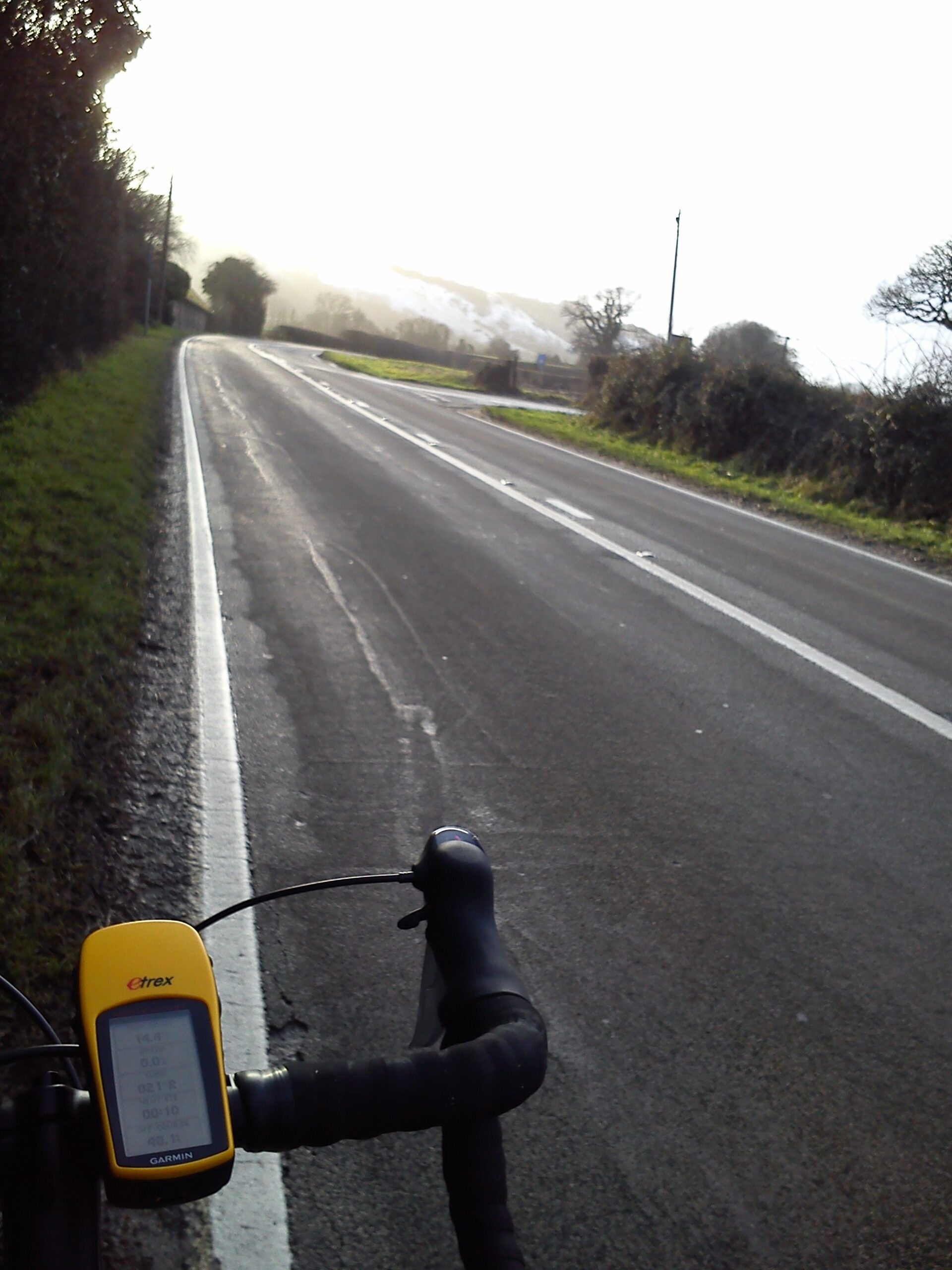 After the long long uphill, there was a corresponding down hill, but like all down hill sections they seem to be much shorter than the up hill bits. It was a good excuse to get up to the highest gear and get to the high 20s while my feet hardly had to turn. Again, the eTrex only has enough space to log it’s position and so I had told it to only record a log every half a mile. In the end I had plenty of space remaining at the end of the ride so I could change that for next time. Because of that, speeds recorded were not as accurate as they could be when it came to viewing the logs.