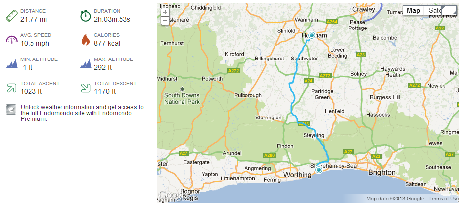 I needed to use holiday up from last year and so thought it would be a good opportunity to do some long miles on the Royal spending the whole day and do some decent mileage. I planned a round trip up to Horsham, itself around 20 miles away, and added in some detours to make the route more interesting. The result would be just over 60 miles.