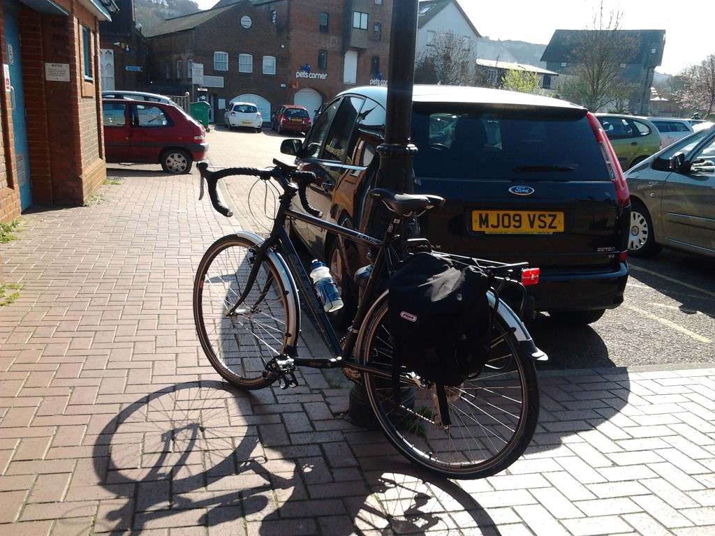 It is of course all very much stereotypical the image of someone in full lycra and road bike that they will be zooming off at some crazy speed while you plod on at a steady rate. While it was said it would be a casual ride, no one left behind, I was still not sure, my only hope was the guy on the mountain bike! We started up the steep hill from Cliffe highstreet into main Lewes, so far so good, no granny gear used so far. I did think in the back of my mind that it was probably only me and the bloke on the mountain bike that had such low gears, should we need them of course. Infact, being the only touring bike it may have been the case that I had the highest selection of gears in the group, a bit of mountain bike and a bit of road bike gearing – nothing excessively high or low but a nice range.