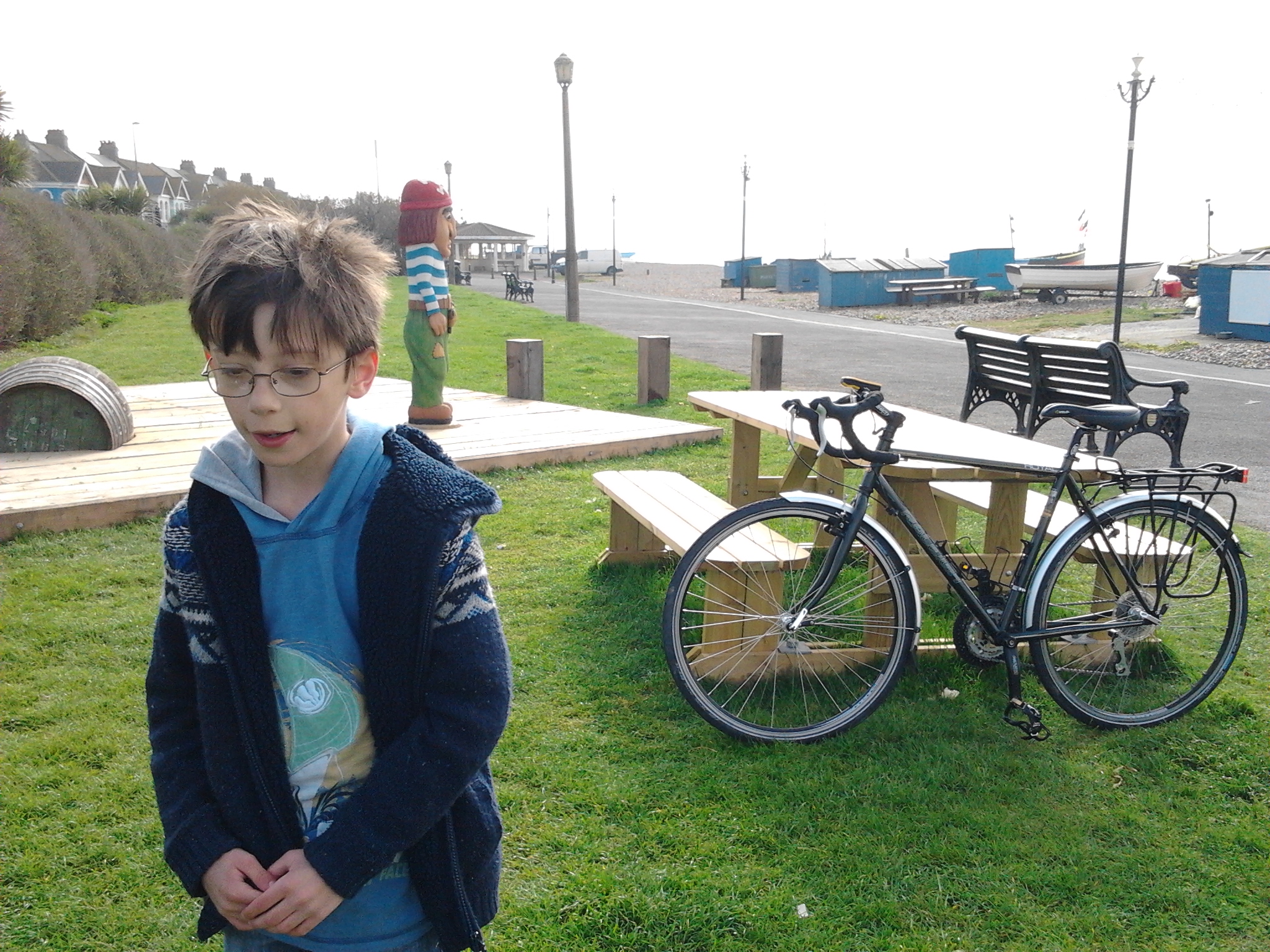 There is nothing much on the Pier apart from people fishing, but even so it was a nice walk after which we biked home. A nice morning ride in ideal weather. Next time we shall try to coax Jack out to meet the wooden shark, I know he would like it.